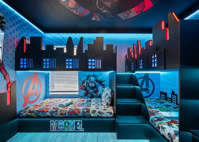 Die 2540Hs 6Bedrooms Disney Villa Sleeps 20 With Pool & Spa hat eine voll ausgestattete Küchenzeile, die mit einem Wasserkocher, einem Kühlschrank und einem Herd ausgestattet ist. Ungefähr 2 Kilometer von hier entfernt finden Sie das Restaurant Kenzie's Restaurant, das leckere Gerichte serviert. Die Villa verfügt über einen privaten Swimmingpool sowie ein Fitnesszentrum und bietet somit zahlreiche Möglichkeiten zur Entspannung und aktiven Freizeitgestaltung.